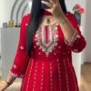 This elegant gown is crafted from premium Chinon fabric, offering a luxurious feel and a perfect drape. The intricate embroidery sequence work adds a touch of sophistication, making it ideal for special occasions. The inner lining is made of soft Micro Cotton, ensuring comfort and breathability throughout the day. The gown comes with a matching Dupatta measuring 2.30 meters, completing the ensemble with grace. Designed for versatility, this gown is a free size that fits up to XL, with a 2XL margin, and is fully stitched for immediate wear. Whether it’s a wedding, party, or festive celebration, this gown promises to make you stand out with its timeless design and impeccable craftsmanship.