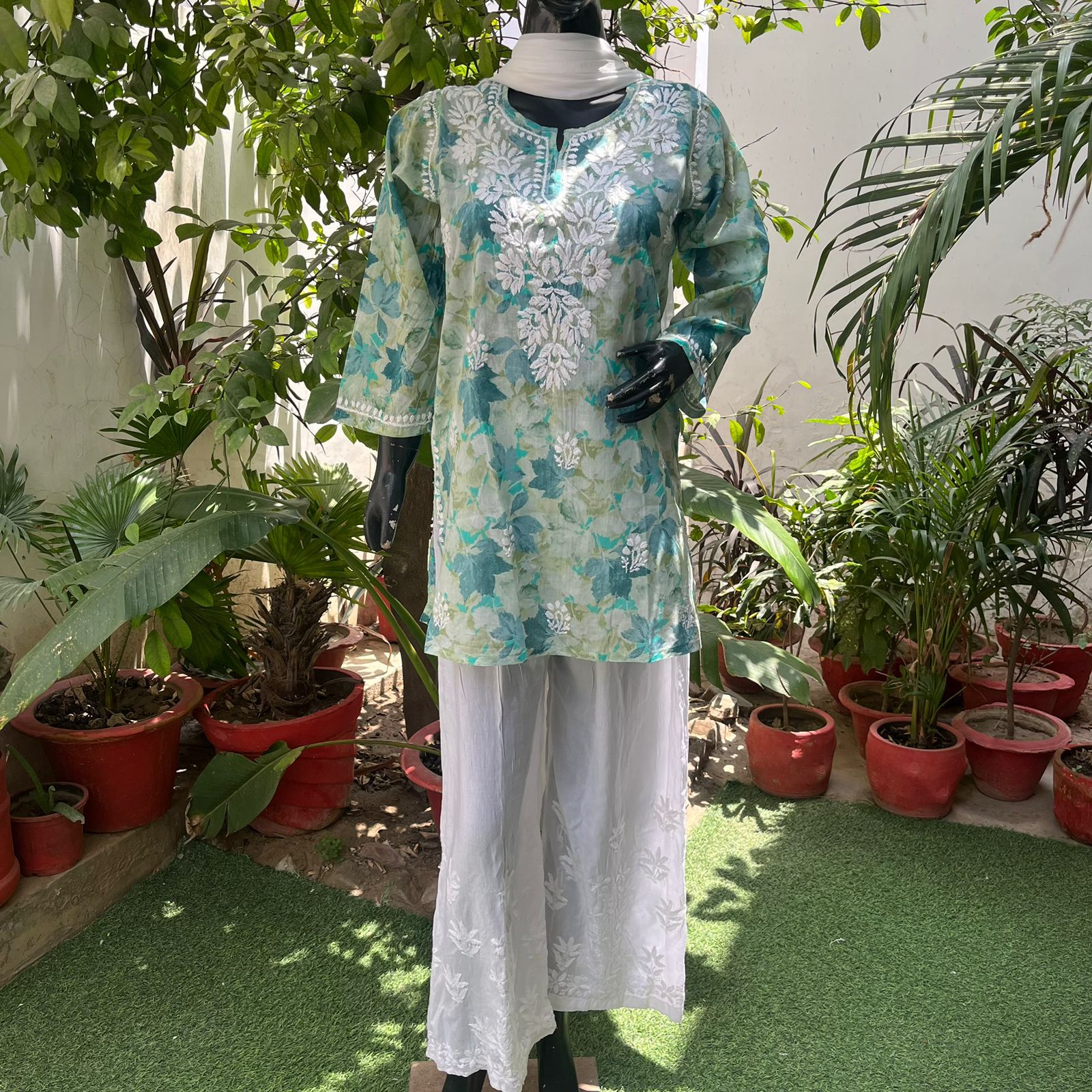 Mul Print Short Top, Modaal Plazzo, Siffon Dupatta, Women’s 3-piece set